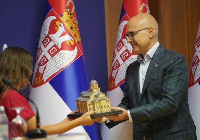 PREMIJER VUČEVIĆ PRIMIO DECU SA KiM Poklonili mu maketu manastira Visoki Dečani: Imaće posebno mesto u mom kabinetu (FOTO)