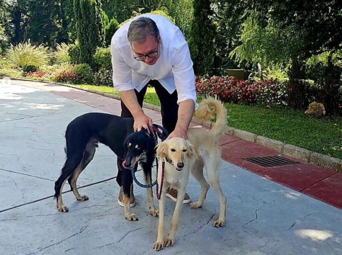 "Umorio sam se od bezočnih laži naših političara i spas potražio u šetnji sa Šarkijem i Zadom, koje sam na poklon dobio od princa Nasera iz Bahreina. Odgovor političarima sledi večeras", naveo je predsednik Vučić na Instagramu i dodao: