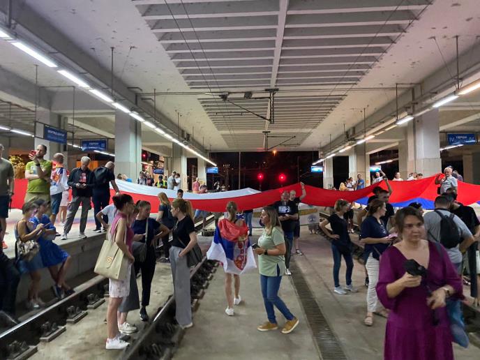Okupljeni su blokirali pruge na Novom Beogradu i Prokopu, kako bi obustavili saobraćaj na oba koloseka.