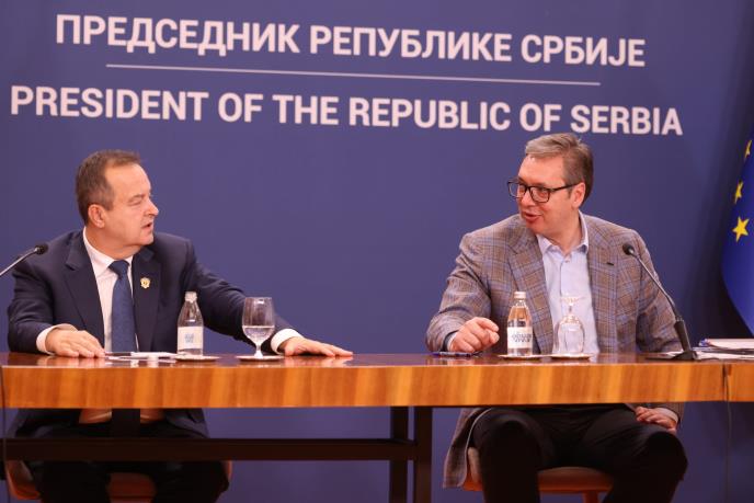 - Predsedniče, ni pendrek nije upotrebljen - rekao je Dačić Vučiću koji se još jednom zahvalio policajcima na profesionalnom i mirnom pristupu u toku ponovnog uspostavljanja međunarodnog železničkog saobraćaja na stanicama Prokop i Novi Beograd.