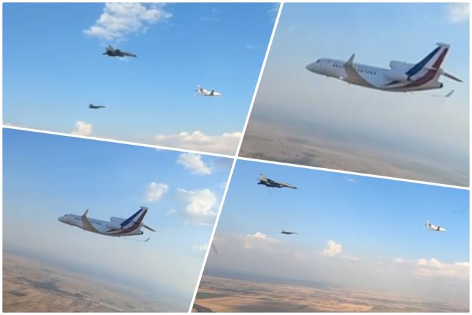 Ubrzo se pojavio snimak nastao u kabini pilota na kom se vide srpski lovački avioni kako obezbeđuju let francuskog predsednika.