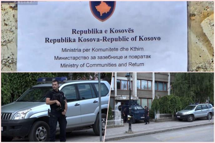 Dok su postavljane improvizovane table, ispred objekta se nalazio jedan policijski džip i nekoliko policajaca, dok je tzv. kosovska policija bila raspoređena i na svim raskrsnicama koje vode do ove zgrade.
