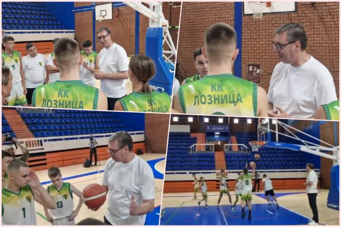 Predsednik Srbije Aleksandar Vučić održao košarkaški trening juniorima koji treniraju u KK Loznica.