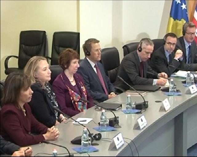 Na konferenciji za novinare sa visokom predstavnicom EU Ketrin Ešton i kosovskim premijerom Hašimom Tačijem, Klintonova je podvukla da SAD neće prihvatiti dovođenje u pitanje nezavisnosti Kosova.