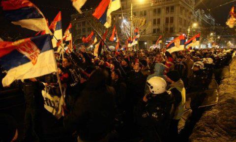 BEOGRAD - Oko 800 pripadnika pokreta Naši, Dveri, organizacije Obraz i drugih udruženja, protestovalo je večeras centralnim gradskim ulicama povodom izgradnje i početka primene sporazuma o integrisanom upravljanju prelazima na Jarinju i Merdaru. Protest "Nikad granica" počeo je ispred Saborne crkve u Beogradu, a okupljeni su, noseći transparente "Nikad granica - Kosovo je Srbija", "Tamo gde je Gračanica ne sme biti granica" i "Glavu za Kosmet", prošetali do zgrada Predsedništva i Vlade Srbije.