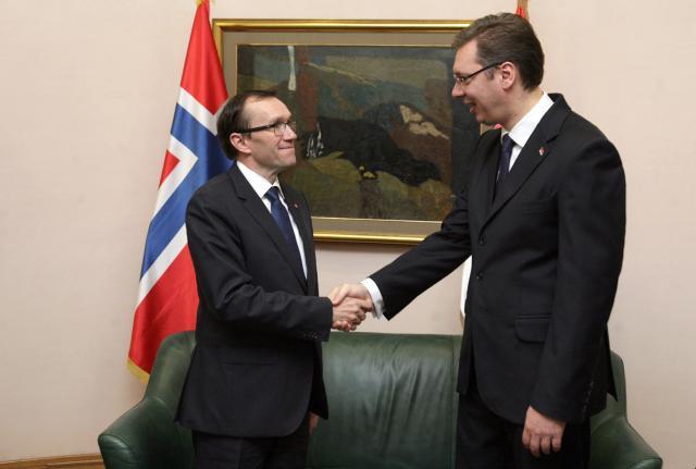 Vučić se zahvalio norveškom ministru spoljnih poslova na podršci koju je Norveška pružala Srbiji u procesu pregovora i istakao da ovaj trenutak treba iskoristiti kao priliku da Srbija uđe u novo razdoblje odnosa sa mnogim državama Evrope i sveta.