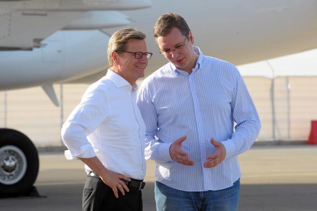 Prvi potpredsednik vlade Aleksandar Vučić izjavio je, na pres konferenciji sa šefom nemačke diplomatije Gvidom Vesterveleom, da će Srbija poštovati briselski sporazum, da je uveren da će dobiti datum za pregovore u junu, i da potom očekuje konkretnu ekonomsku podršku Nemačke, a ne pohvale.