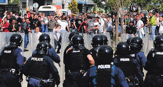 Oni su se ispred radnog predšedništva Skupa pojavili sa parolom "U Crnoj Gori se Albanci ugnjetavaju, to nije prijateljstvo".