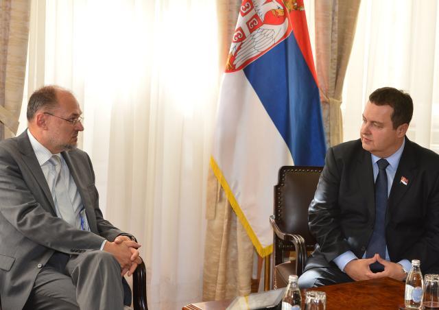 "Naš cilj je da Srbija bude sledeća zemlja koja će ući u EU", izjavio je Dačić na konferenciji za novinare posle razgovora sa izvestiocem Evropskog parlamenta za Srbiju Jelkom Kacinom.