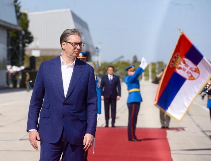 Predsednik Srbije Aleksandar Vučić prisustvovao je danas prikazu sposobnosti Vojske Srbije "Zastava 2024" na vojnom aerodromu "Pukovnik-pilot Milenko Pavlović" u Batajnici.