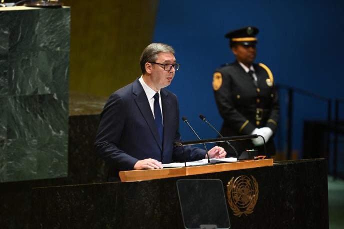 Ovo je deo govora predsednika Srbije Aleksandra Vučića kojim je najavio najjači segment svog obraćanja na 79. sednici Generalne Skupštine UN u Njujorku. Vučić je činjenicama pred kojima su velike, moćne sile mogle samo da pognu glavu, objasnio svetski poredak i nepravdu koja je Srbiji činjena decenijama.