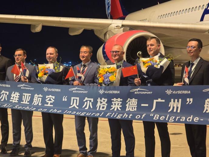 Prvi avion Er Srbije koji je poleteo za Guangdžou iz Beograda oko pola sata posle ponići, sleteo je u taj kineski grad oko 18.30 sati po lokalnom vremenu.