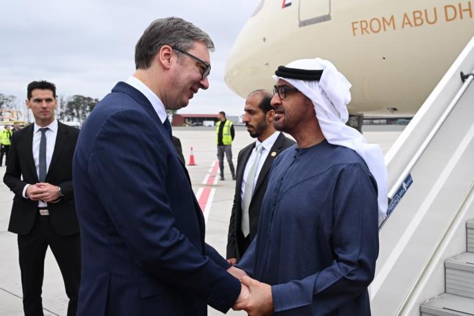 Predsednik Republike Srbije Aleksandar Vučić dočekao je predsednika Ujedinjenih Arapskih Emirata šeika Mohameda bin Zajeda al Nahjana, koji boravi u radnoj poseti Republici Srbiji.