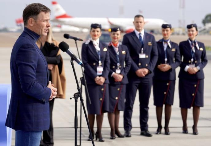Prvi potpredsednik Vlade i ministar finansija Siniša Mali, ministarka privrede Adrijana Mesarović i direktor kompanije Er Srbija Jirži Marek prisustvuju danas na Aerodromu "Nikola Tesla" predstavljanju novog aviona s bojom i oznakom specijalizovane izložbe Ekspo 2027.