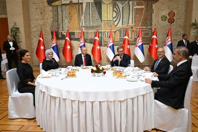 - U nešto opuštenijom atmosferi, uz srpske i turske specijalitete spravljene veštim rukama naših kuvarskih majstora, nastavljam razgovor sa predsednikom Erdoganom o važnim pitanjima, ali i o svakodnevnom životu.