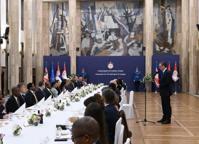 Predsednik Republike Srbije Aleksandar Vučić sa suprugom bio je domaćin večere u čast Njegovog Veličanstva kralja Msvatija III od Kraljevine Esvatini.