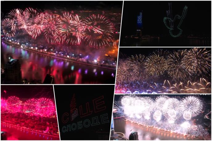 Povodom obeležavanja osam decenija od oslobođenja Beograda na nebu iznad prestonice upriličeni su dron šou i vatromet.