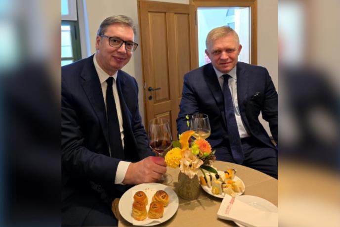 - Srećan što sam imao priliku da pogačice sa čvarcima i čašu dobrog vina podelim sa velikim prijateljem Srbije Robertom Ficom. Želim mu dobro zdravlje i sve najbolje slovačkom narodu i njihovoj državi - napisao je Vučić u opisu fotografje.