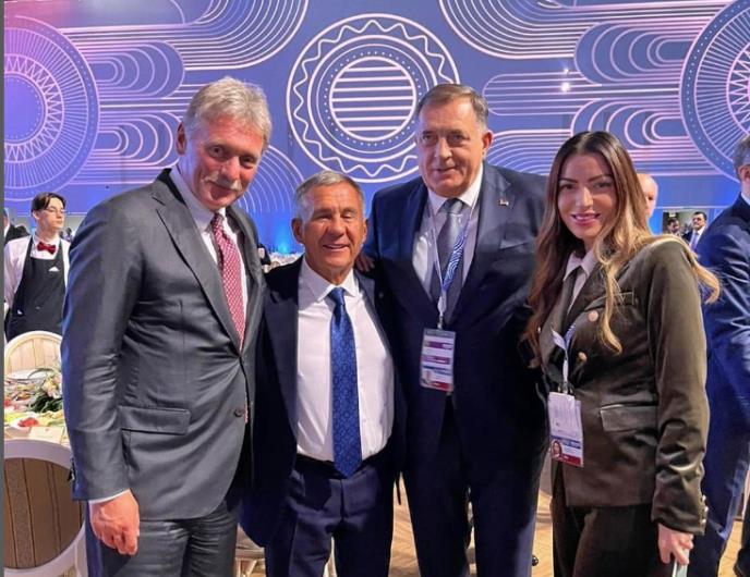 - U prijatnom razgovoru sa našim domaćinima Rustamom Minihanovim predsednikom Republike Tatarstan i Dmitrijem Peskovim pres sekretarom predsednika Ruske Federacije, i Miloradom Dodikom predsednikom Republike Srpske na Samitu BRIKSA u Kazanju - napisala je ministarka na svom Instagramu.