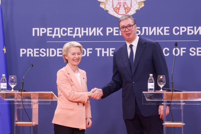 - Nadam se i da ćemo otvoriti klaster tri do kraja godine. Moramo čuvati mir, iako ja nisam optimista što se tiče situacije u svetu. Za kraj, razume se da je predsednica Fon der Lajen, iako je ljubazna i izuzetno pristojna žena koja razume poziciju Srbije, naravno da je tražila od nas mnogo veću usaglašenost sa spoljnopolitičkim deklaracijama EU, i po nekim drugim pitanjima. Nikoga ne obmanjujem, mi jasno znamo šta su zahtevi i očekivanja - rekao je predsednik.