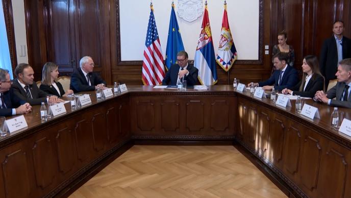Predsednik Republike Srbije Aleksandar Vučić sastao se sa delegacijom Američko-srpskog poslovnog saveta koji čine kompanije Archer Daniels Midland, Bechtel, Citi, MSD, Organon, Palo Alto Networks, Pfizer, Visa, USBC.