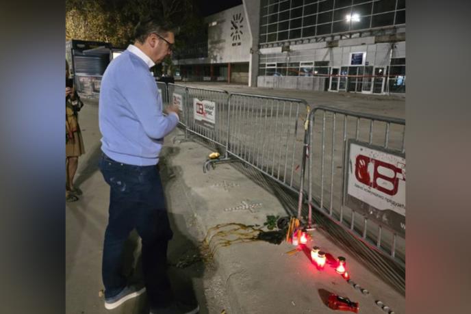 Ali, činjenice kažu drugačije: predsednik Srbije Aleksandar Vučić jeste te večeri otišao na mesto tragedije. Zapalio je sveću, postojao minut, odao poštu, prekrstio se… mogle su da ga vide stotine Novosađana koji su se vraćali sa protesta i mogli su da ga vide svi koji su hteli na fotografijama koje je objavio Kurir, a dostupne su i na društvenim mrežama.