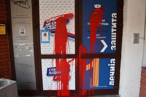 "Zasad nepoznati izgrednici, polili su crvenom bojom ulaz u prostorije vranjskog SNS-a i pokazali čitavoj javnosti da su putevi nasilništva i anarhije jedini koje je opozicija spremna da ponudi Srbiji i njenim građanima", naveli su u saopštenju.