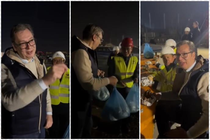- Ponosan sam što ovde sa našim ljudima i kineskim radnicima možemo da podelimo pljeskavice, i da bar na trenutak podelimo njihove brige i da pomognemo da lakše prebrodu ovu hladnoću. Noć je a neverovatni su rezultati u odnosu na to od pre nekoliko dana kada smo bili. Izuzetan je napredak, i ja sam ponosan na ovo što svi zajedno radimo i sada ćemo ih zimi češće obilaziti i da se radujemo napretku. Neverovatno je koliko je gradilište, presrećan sam i oduševljen i hvala svim ovim divnim ljudima i prijateljima iz Kine, našim srpskim radnicima, takođe koji vredno i naporno rade. I Srbija ne sme da stane - izjavio je Vučić i dodao da je "dobra pljeskavica", koju je podelio sa radnicima.