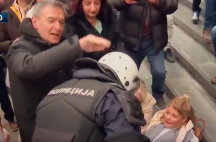Naime, on ga je mazio po šlemu, dok je policajac držao štit koji su pokušale da otmu narodne poslanice Danijela Nestorović iz Ekološkog ustanka, Jelena Milošević iz SSP i Dragana Rakić iz DS.