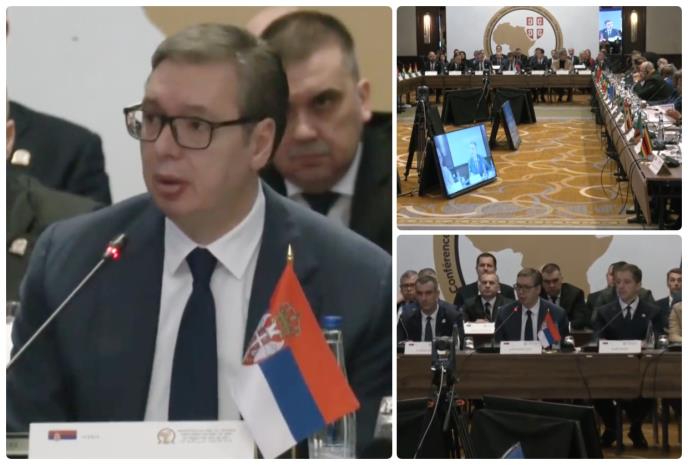 Predsednik Srbije Aleksandar Vučić učestvovao je danas u radu Plenarne sednice o uticaju terorizma i ilegalnih migracija na ekonomsku bezbednost, u okviru konferencije "Srbija-Afrika 2024: Dostojanstvo".
