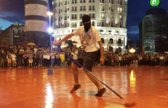 Opozicionari su 2016. godine u Severnoj Makedoniji pozvali građane da se pridruže protestima i akcijama, blokirali su ulice i raskrinice, što se prethodnih dana i nedelja dešava i u Srbiji, a koristili su i farbu crvene boje koja simbolizuje krv, a kojom su gađali zvanične državne institucije.