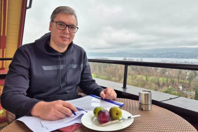 CIRIH - Poslednje pripreme pred govor u Cirihu. Svet se brže menja nego ikada, imamo li odgovore na opštu destabilizaciju i nered? O tome, ali i o poziciji Srbije u savremenom svetu i novom vremenu govoriću danas oko 16 časova, poručio je predsednik Srbije Aleksandar Vučić uz fotografiju na kojoj se vidi kako se sprema za svoj današnji govor.