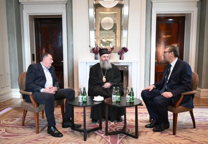 - Poručio sam da samo zajedno, gde god bili, u zemlji ili rasejanju, možemo svaku prepreku da savladamo. Zahvalan sam SPC na svim naporima koje ulaže kako bi se očuvalo jedinstvo našeg naroda u ovim teškim vremenima, kazao je predsednik posle susreta sa episkopom švajcarskim g. Andrejem.