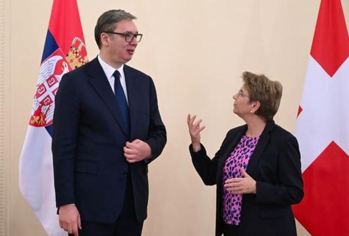 - Razmenili smo iskustva u oblastima dobrog upravljanja i vladavine prava. Zahvalio sam Švajcarskoj na konstruktivnoj podršci kako evropskim integracijama Srbije, tako i u razvoju naše zemlje i naglasio važnost dijaloga i partnerstva u jačanju regionalne stabilnosti, poručio je predsednik posle današnjeg susreta u Bernu s predsednicom Švajcarske Konfederacije Violom Amherd.