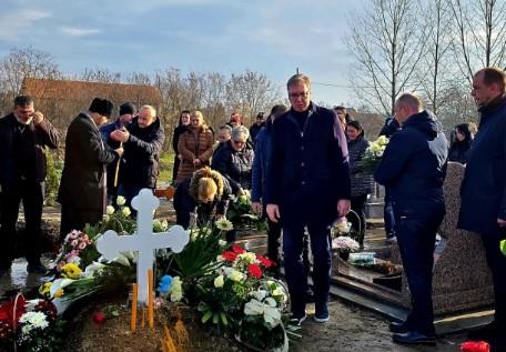 Vučić je položio venac na grob nastradalog mladića, a zatim posetio i porodicu Đure Švonje, koji je poginuo u Novom Sadu.