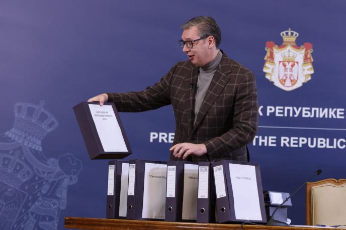 (FOTO) VUČIĆ POKAZAO SVU DOKUMENTACIJU O REKONSTRUKCIJI ŽELEZNICE: Biće javno objavljena! Ne očekujem kraj protesta, u pitanju je čista i suva politika