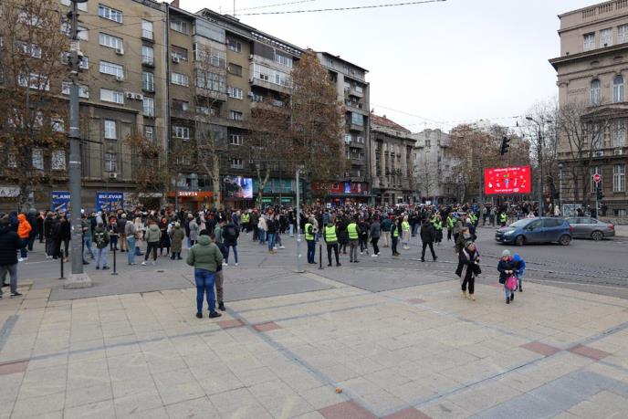 Tako je na 15 minuta stao i saobraćaj na uglu Ruzveltove i Bulevara kralja Aleksandra, kod tehničkih fakulteta.
