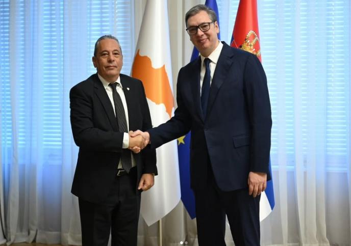 - Razmenili smo mišljenja i o aktuelnim bezbednosnim rizicima u kontekstu najnovijih geopolitičkih tenzija i sukoba u nekoliko ključnih regiona, kao i o zajedničkim ciljevima u okviru međunarodnih misija. Ponovio sam zahvalnost na doslednom i principijelnom stavu Kipra o nepriznavanju tzv. Kosova i naglasio da naša zemlja pruža punu podršku nastojanjima Kipra da reši svoje najznačajnije nacionalno pitanje, u cilјu očuvanja teritorijalnog integriteta i suvereniteta, kazao je Vučić i dodao: