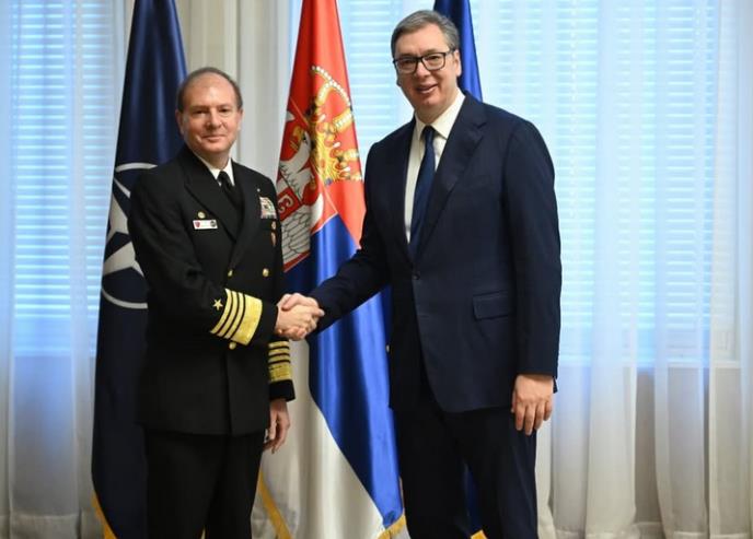 Predsednik Republike Srbije Aleksandar Vučić sastao se sa komandantom Komande združenih snaga NATO u Napulju admiralom Stjuartom Mančom.