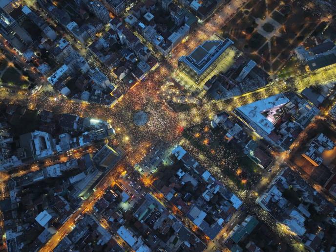 Snimak zabeležen dronom pokazuje koliko je ljudi okupljeno na protestu na Slaviji: