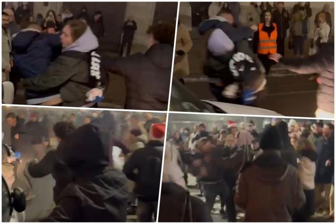Učesnici večerašnjeg političkog protesta napadali su i tukli ljude u Beogradu na Studentskom trgu.