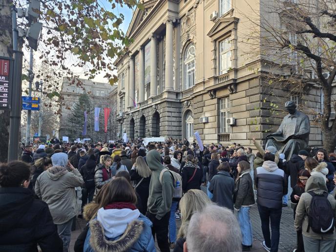 Inače, grupa "studenata" iz Ukrajine i Hrvatske, podsetimo, koja se pojavila u Beogradu pod plaštom turističke posete, viđena je na fakultetu tokom blokade, a onda su otišli do hrvatske ambasade. Ta grupa je predvođena Oleksejom Čumakom, Ukrajincem koji navodno studira u Zagrebu, i koji je bio hapšen u Beogradu zbog neovlašćenog snimanja dronom zgrade Generalštaba i drugih državnih institucija. Detaljnije o tome pročitajte u odvojenoj vesti.