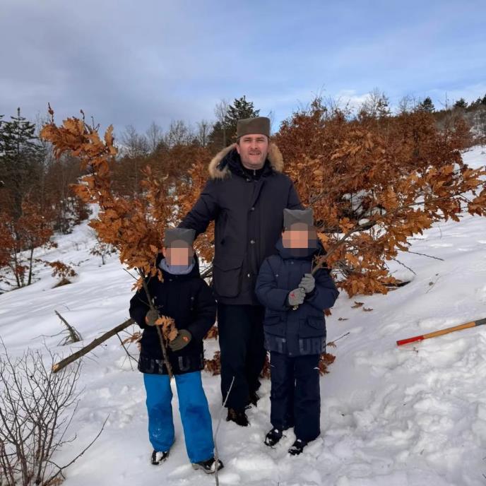 EVO KAKO SELAKOVIĆI UŽIVAJU U PRIRODI: Ministar sa sinovima sekao badnjak u selu Seništa kod Nove Varoši