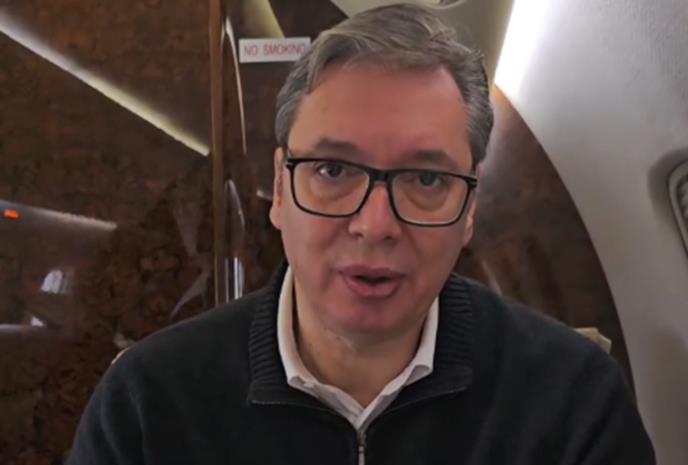 Predsednik Srbije Aleksandar Vučić oglasio se iz aviona kojim putuje na Svetski ekonomski forum u Davosu.