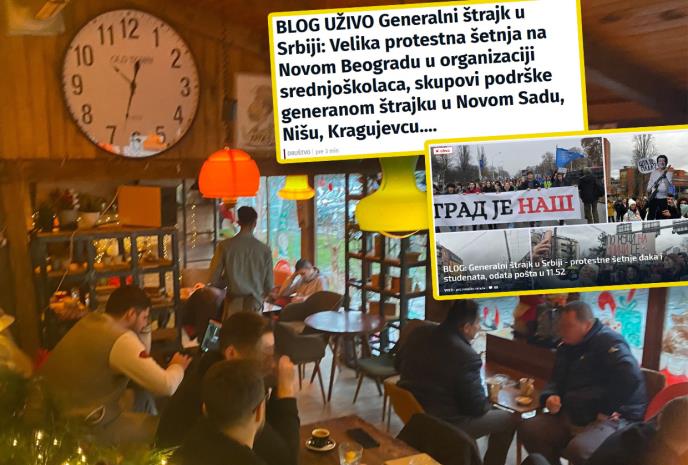 Ovo su naslovi: "Još jedna sudija Prvog osnovnog suda u Beogradu pružila podršku studentima"; "Na Mirijevu blokirali raskrsnicu" (hteli su da kažu „u Mirijevu“); "U štrajku deo zaposlenih u Domu zdravlja Zemun"... a navodi se i da su se štrajku priključili jedan profesor u Lebanu i jedan bibliotekar iz Inđije! Ima i ovo, „Swisslion Takovo Crna Gora se priključio štrajku“!