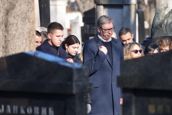 Predsednik Aleksandar Vučić stigao je na groblje sa decom.