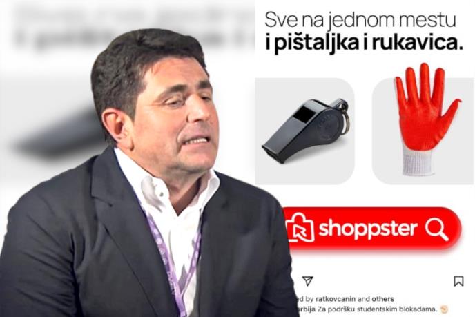 Nabavio je velike količine crvenih rukavica i pištaljki i preko svoje firme Shopster ih prodaje studentima i građanima koji stoje uz njih! Mala para raduje čoveka, kaže naš narod.