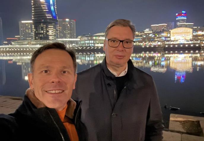 Predsednik Srbije Aleksandar Vučić prošetao je večeras sa Sinišom Malim, a ministar finansija iskoristio priliku da napravi selfi.