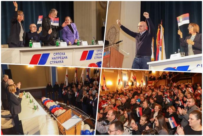 Pored Vučevića, na tribini su učestvovali i član Predsedništva SNS-a i predsednica Pokrajinske vlade Maja Gojković, predsednica opštine Apatin Dubravka Korać i predsednik Skupštine opštine Apatin Milan Škrbić.