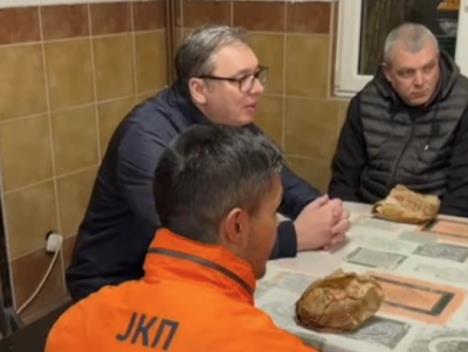 Predsednik Republike Srbije Aleksandar Vučić posetio je večeras radnike Gradske čistoće, prilikom čega im je doneo hranu, ali je ostao i da razgovara sa njima.